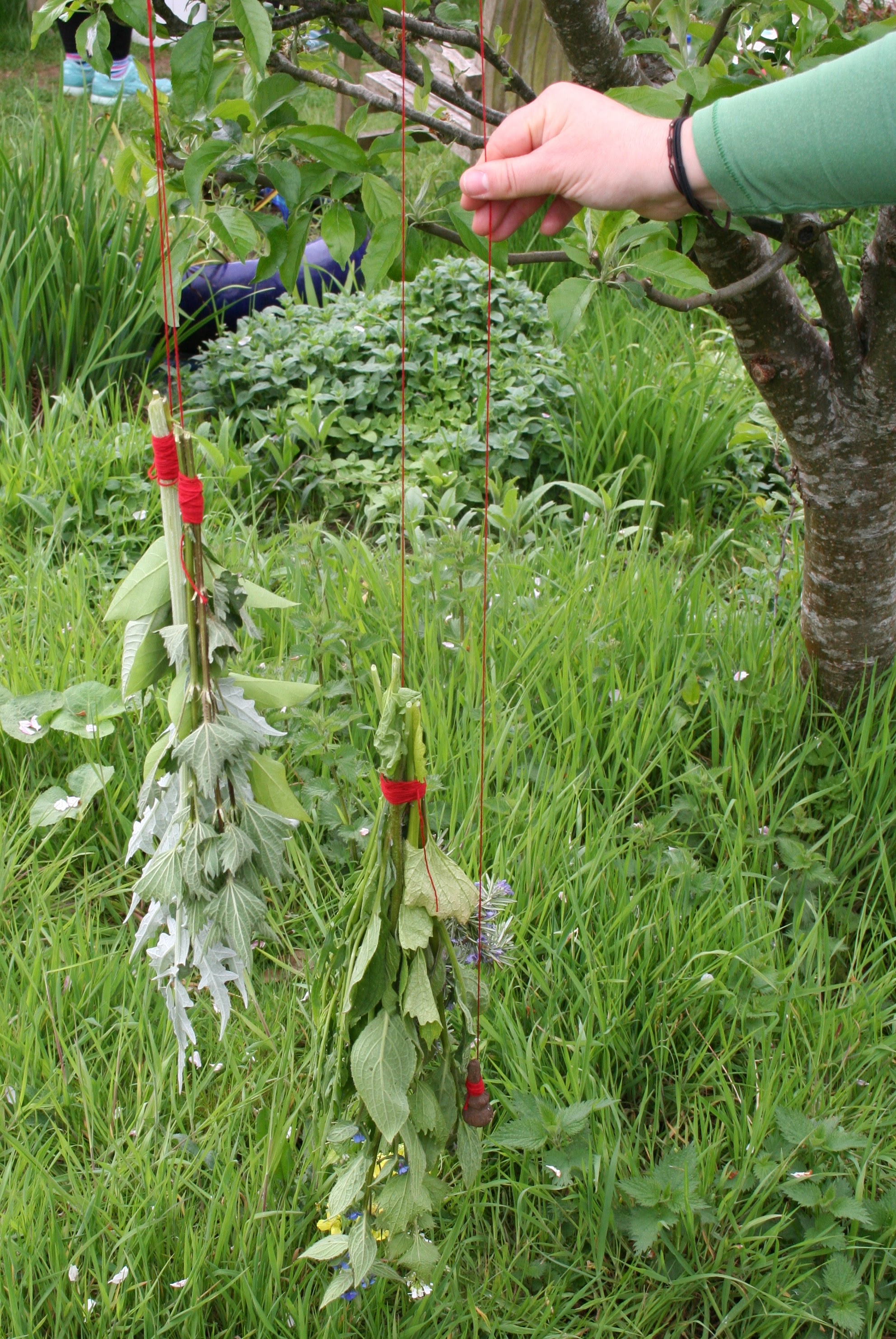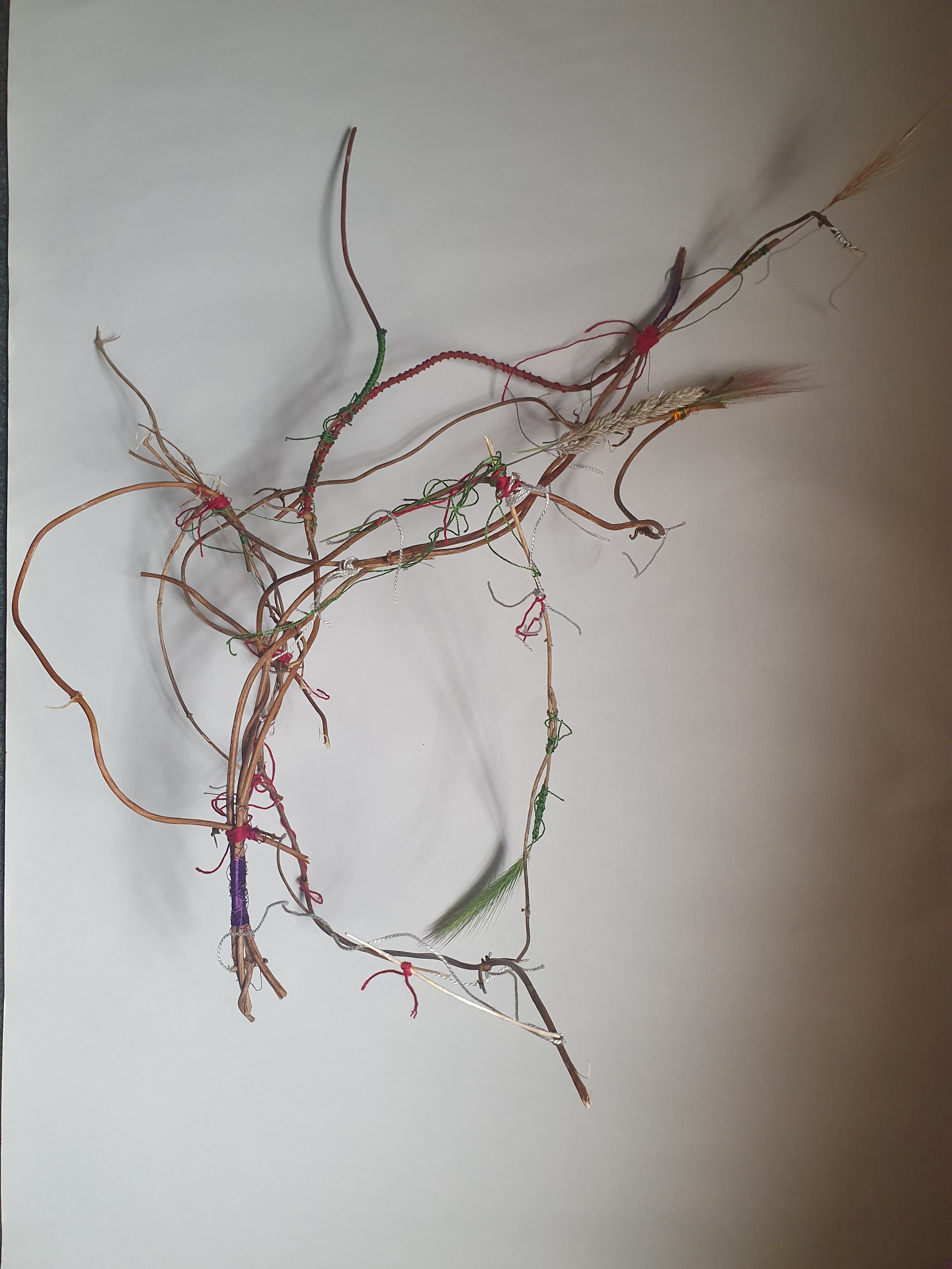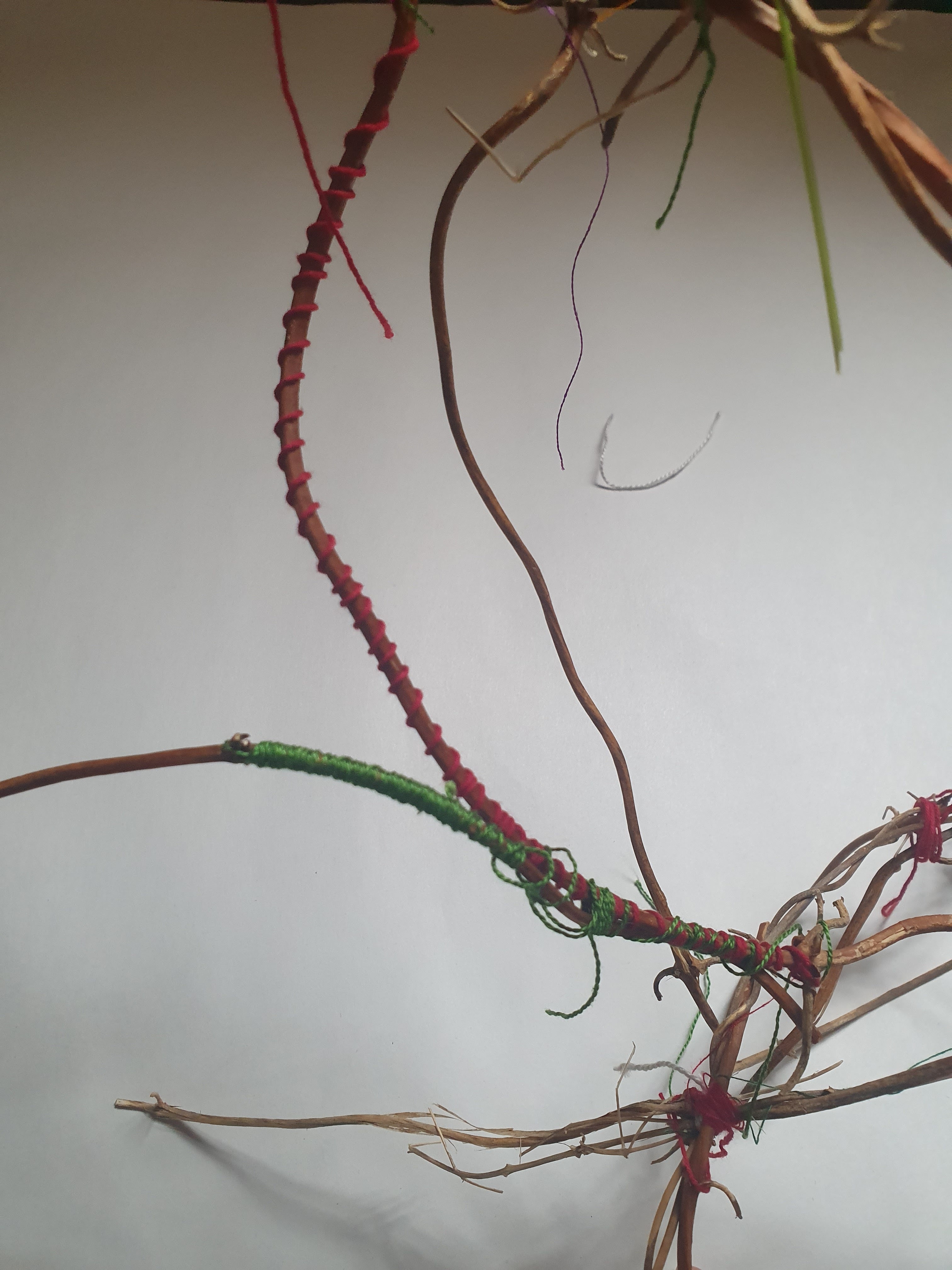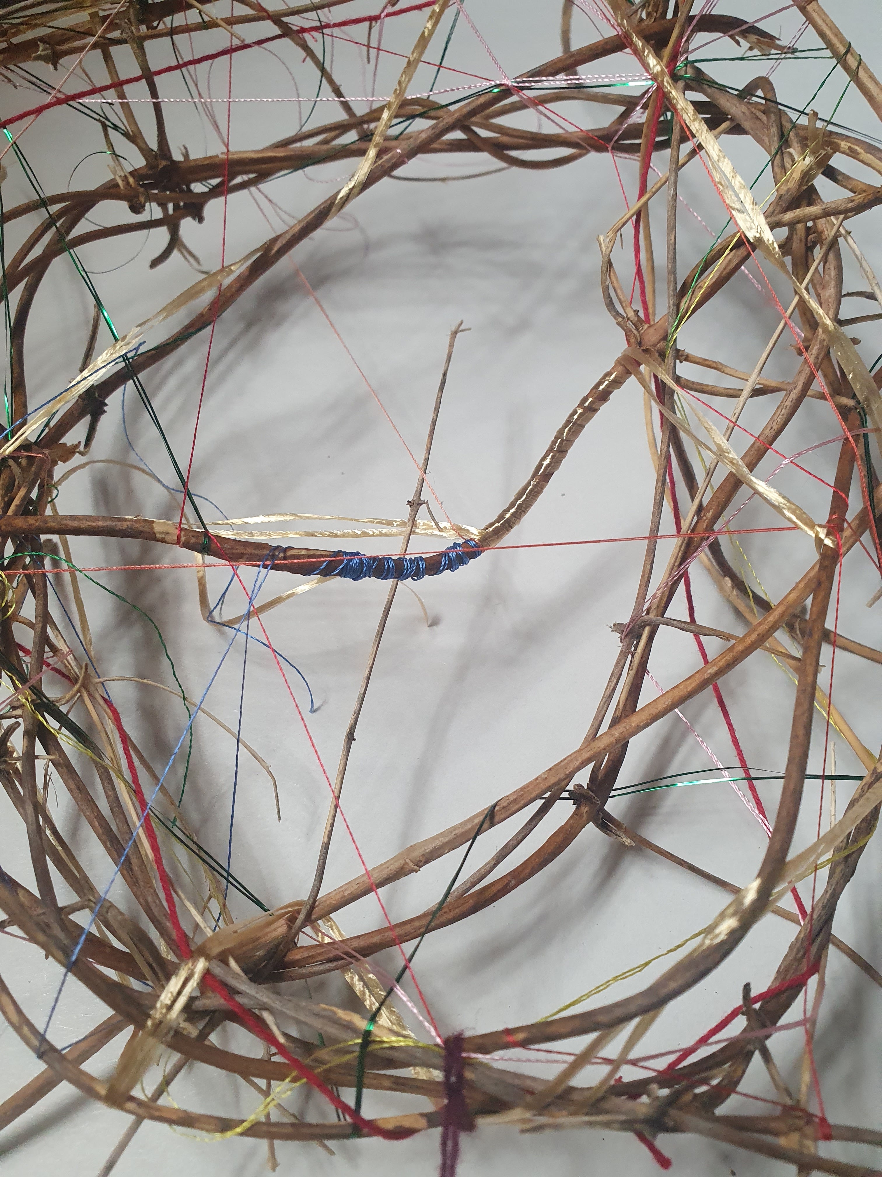Dried jasmine stems and my inherited thread collection with participants at Sol Haven, Northampton