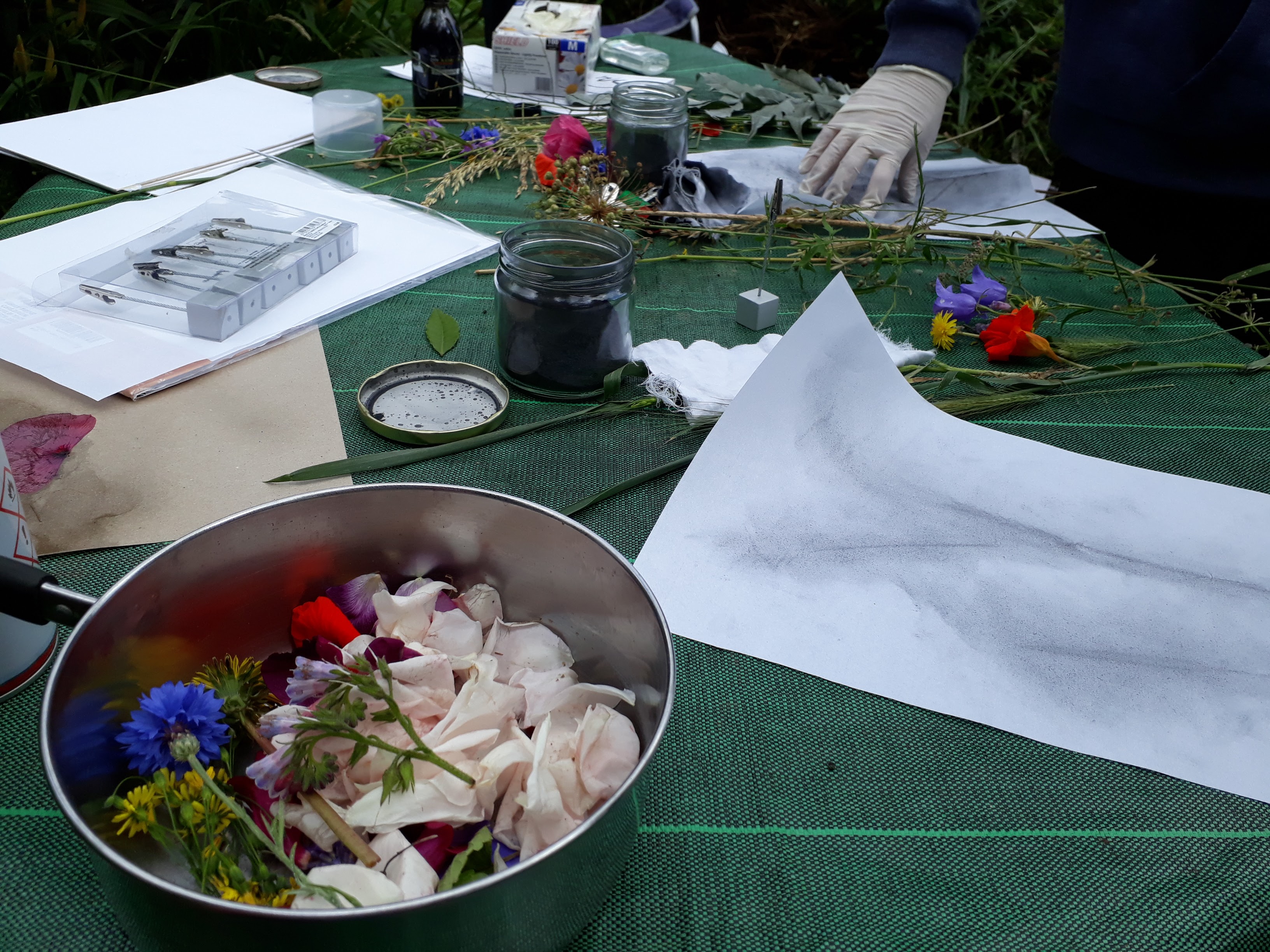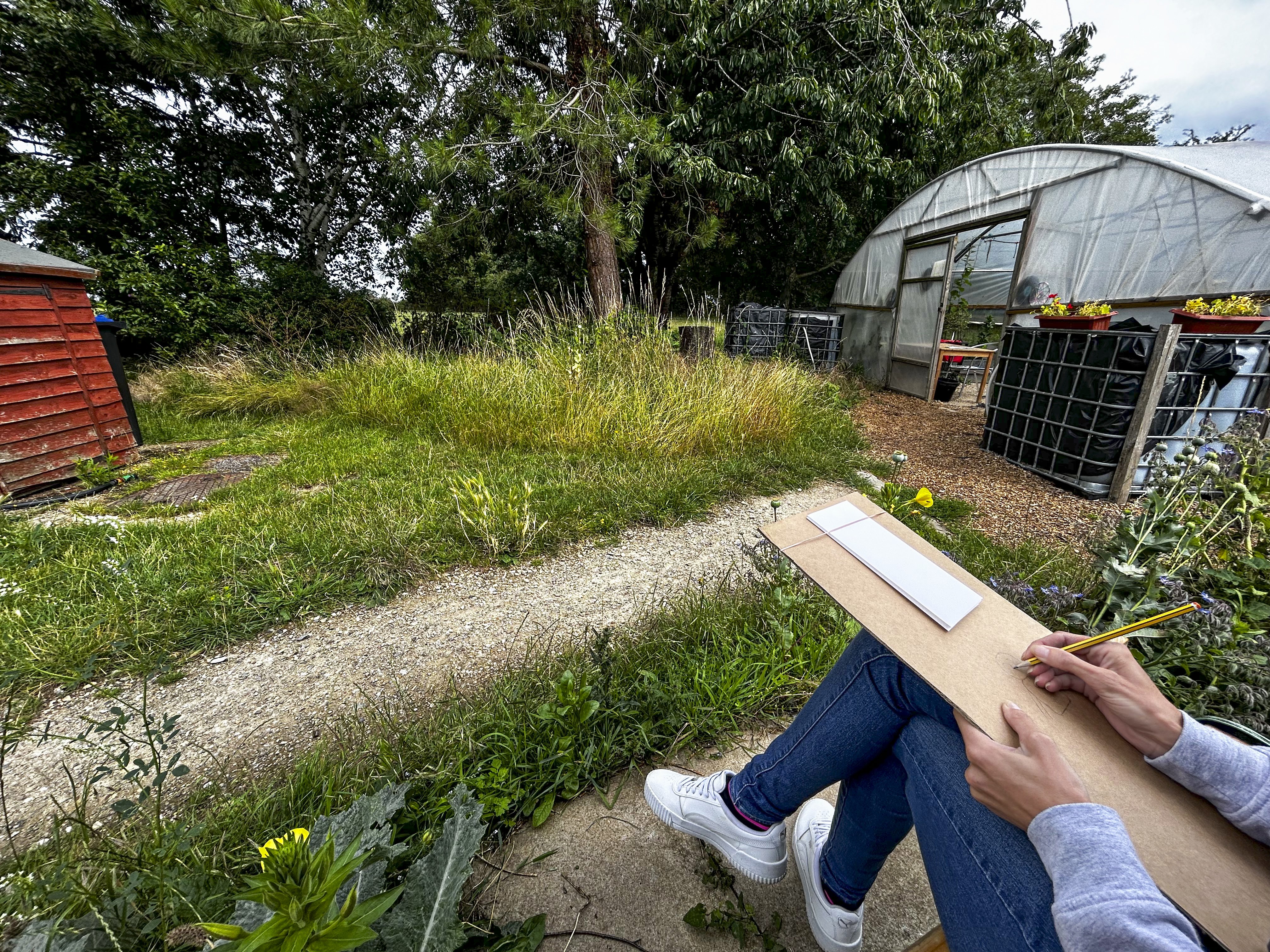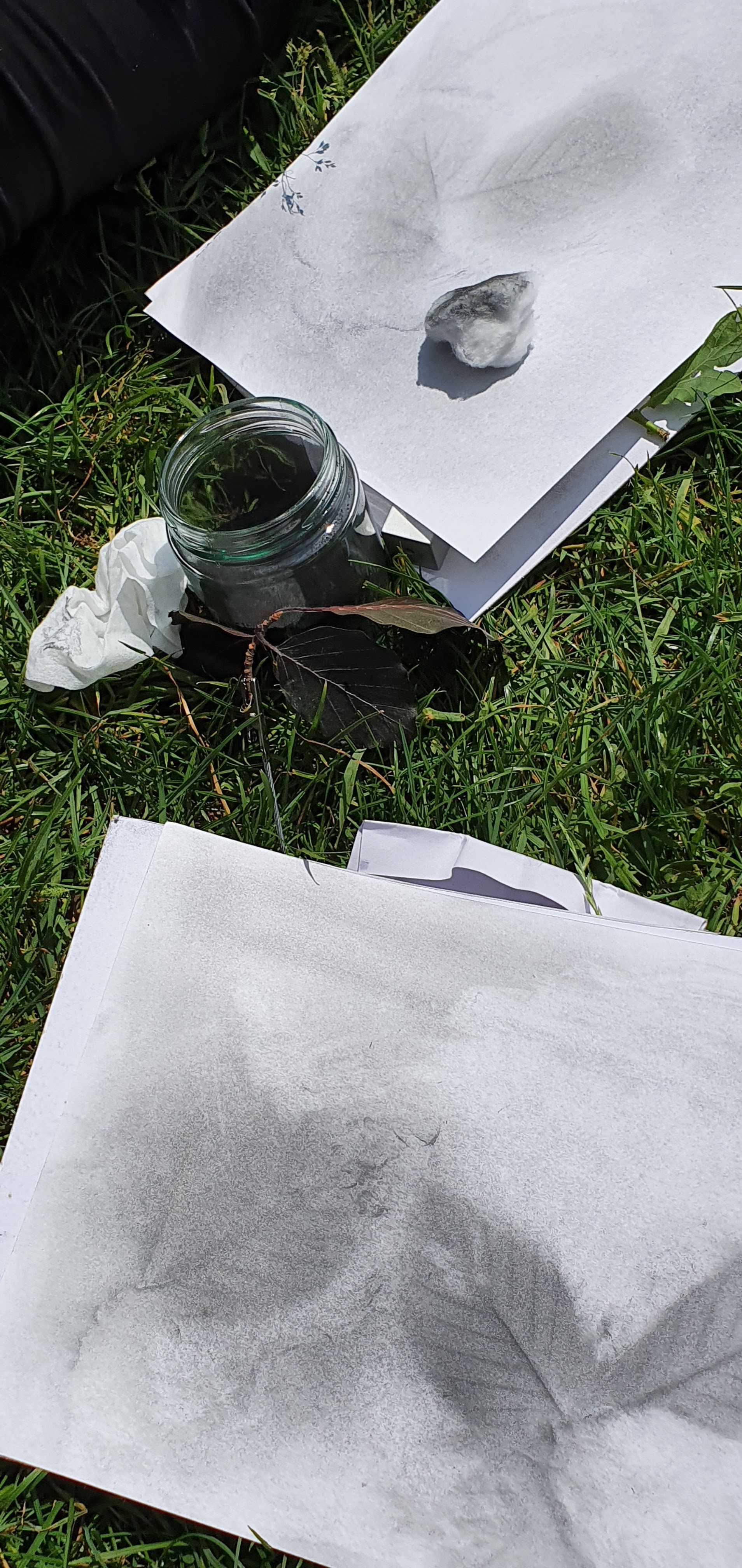 Graphite powder drawings and natural inks with participants at the C2C Allotment, Northampton