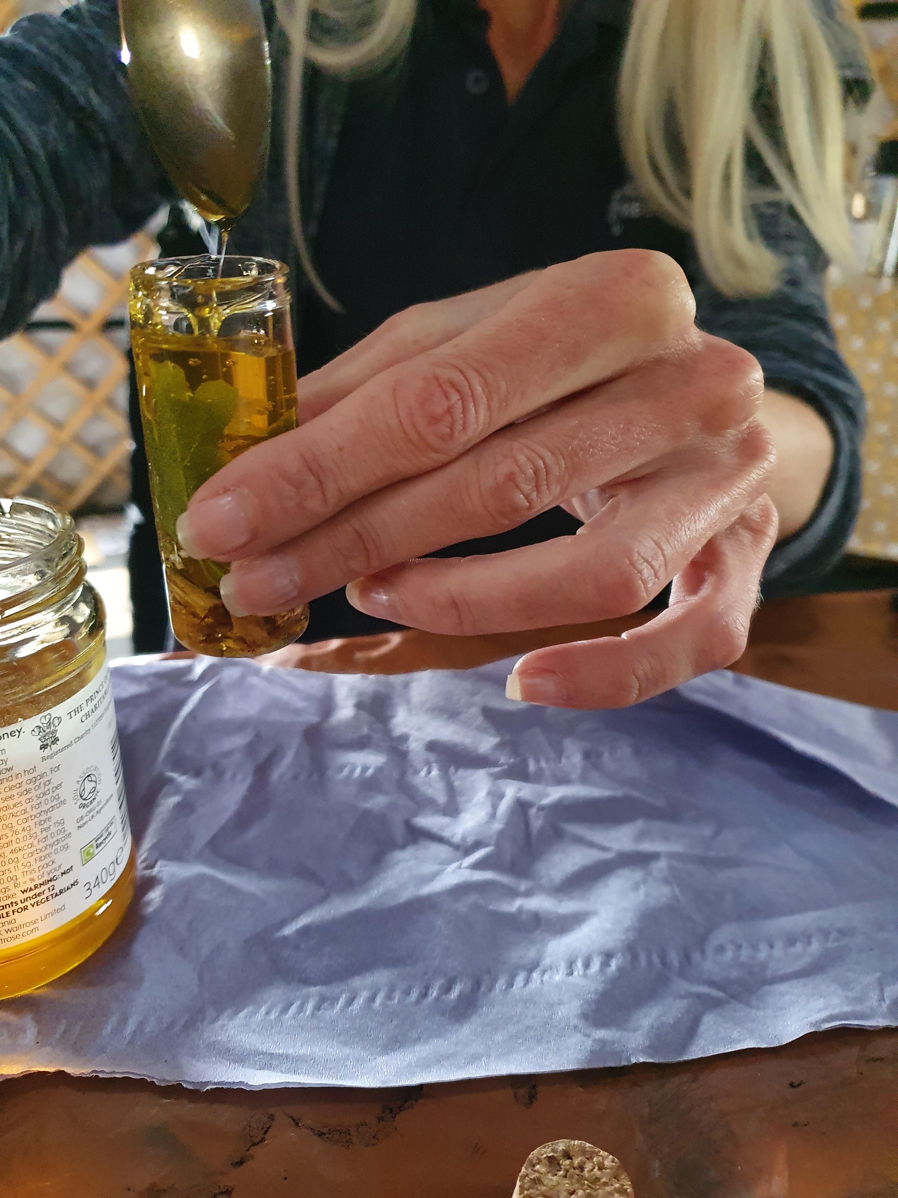 Natural ephemera and honey with participants at Sol Haven, Northampton