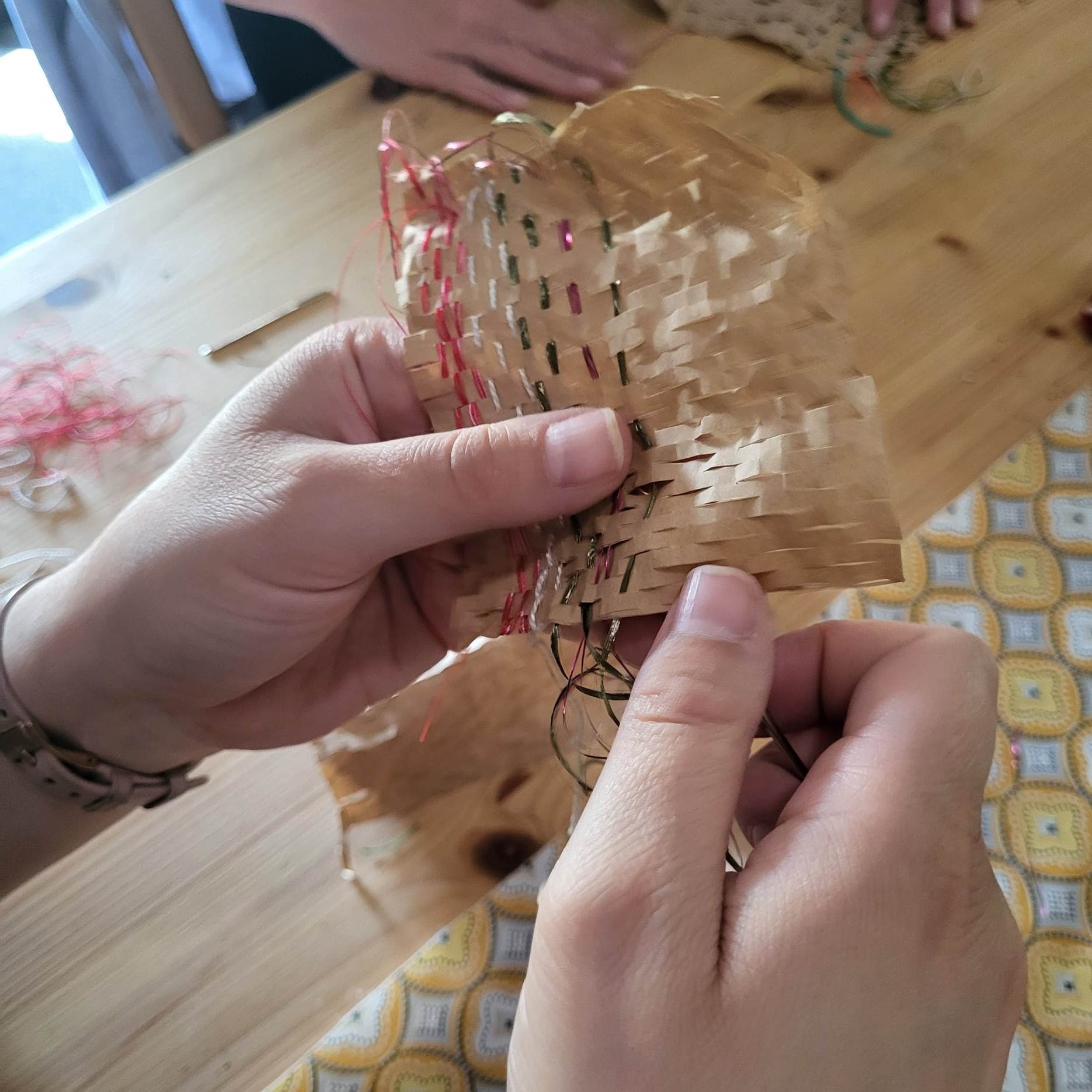 Paper packaging and my inherited thread collection with participants at Sol Haven, Northampton