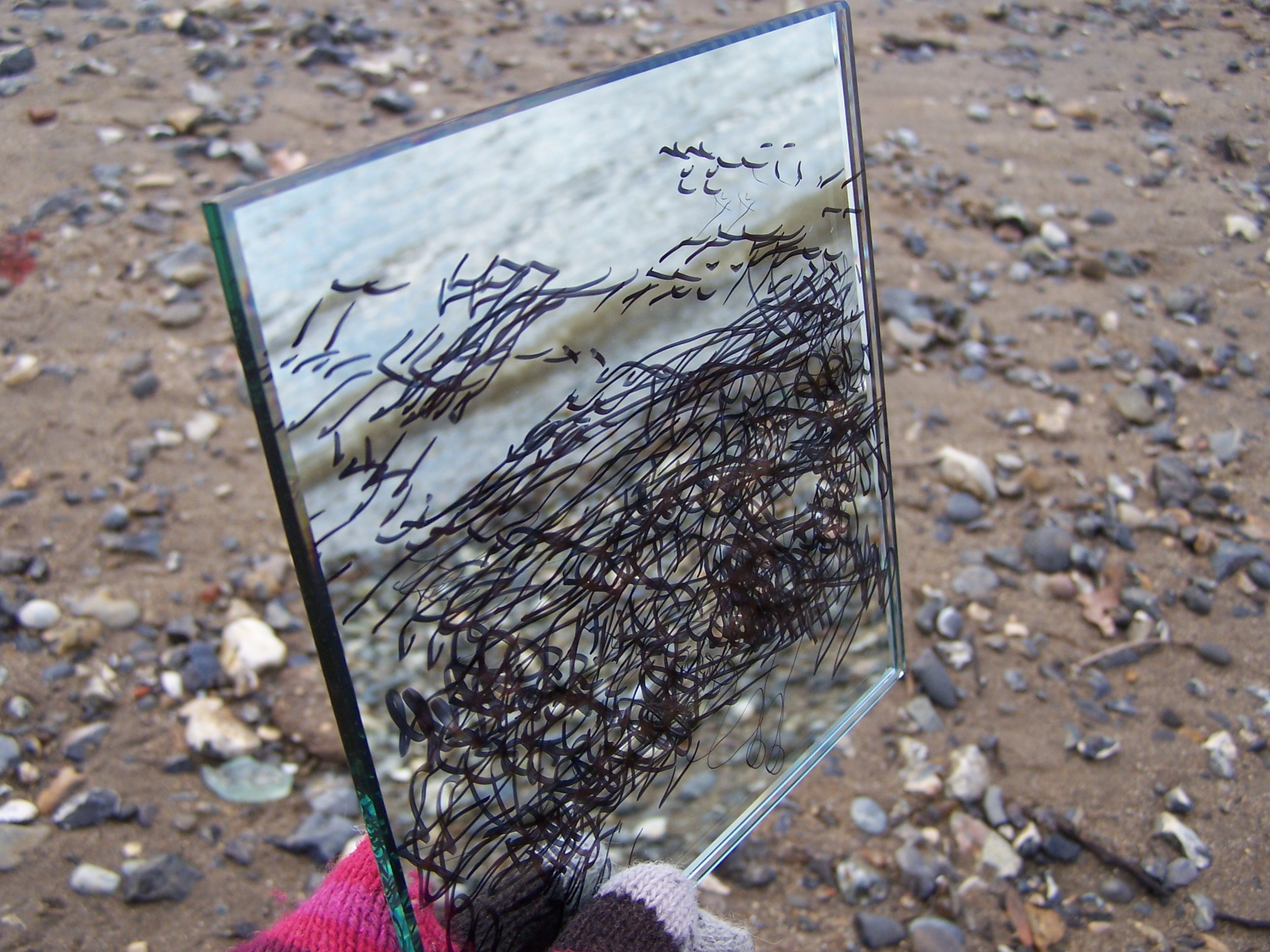 from the series 12 minutes, pen on mirror, 2007