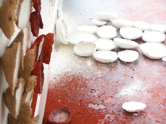 rounds, detail 1, pigment, sand and wax, Aber 2010